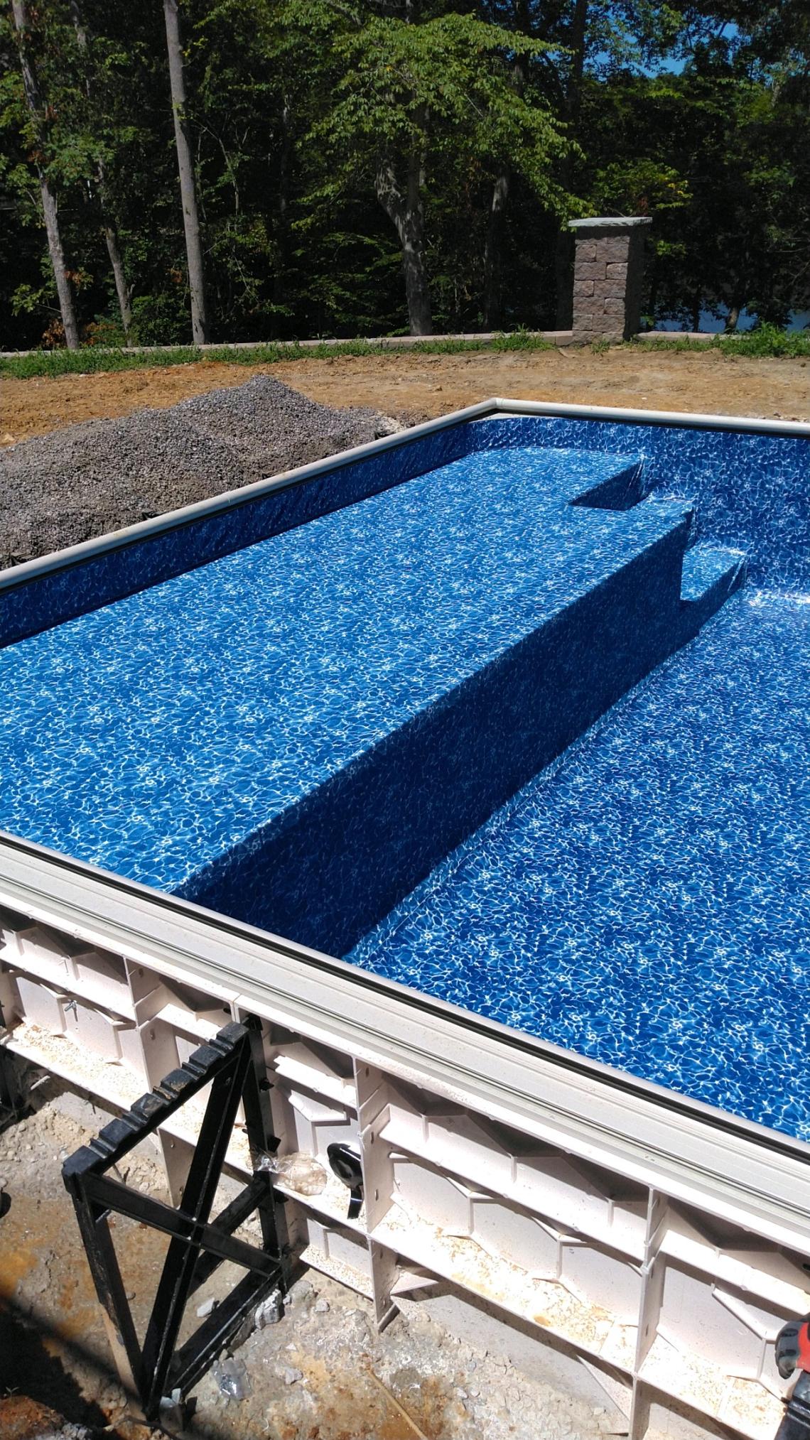 An option in the pool; a shallow shelf built into the pool with the liner over it for a nice relaxing spot.